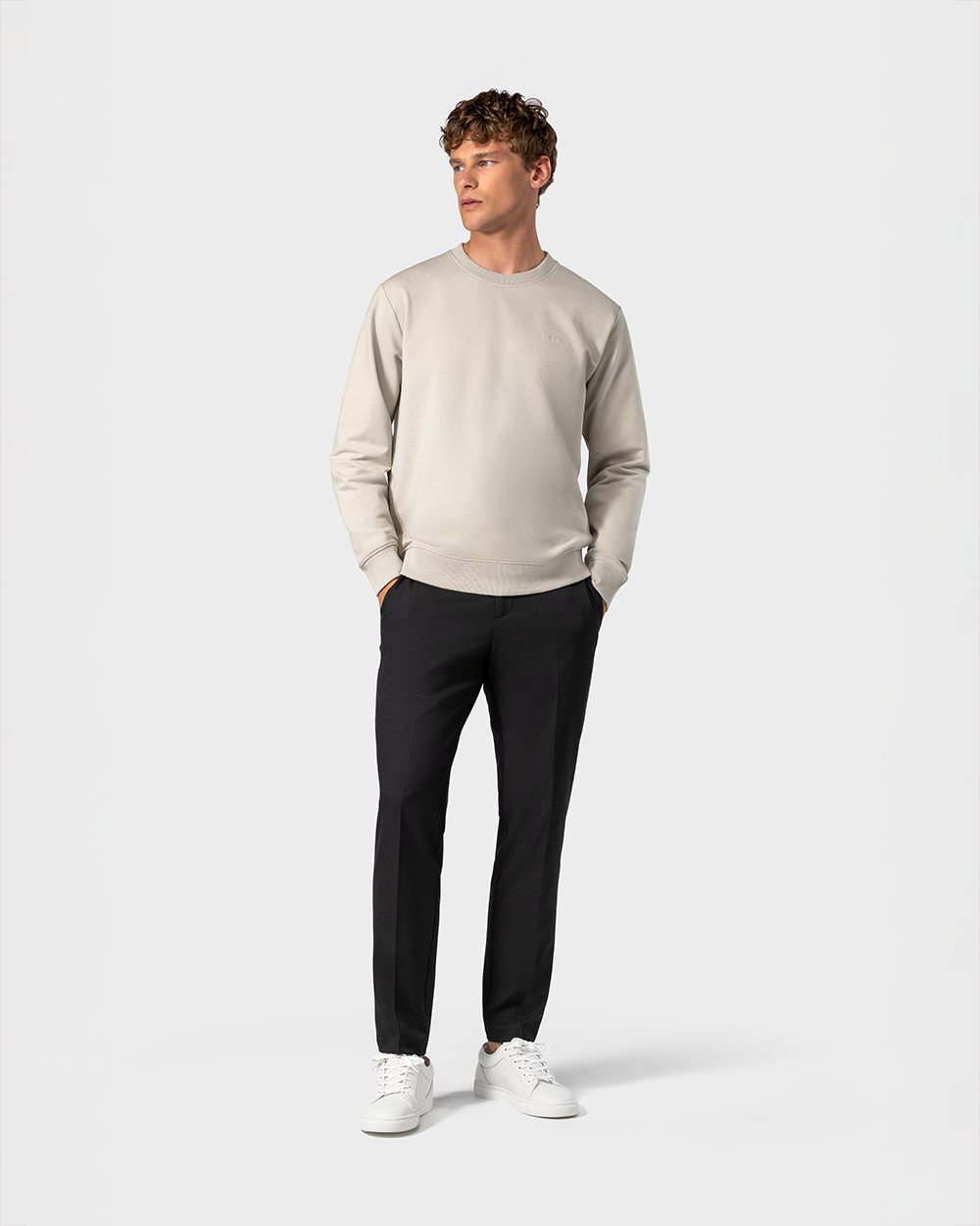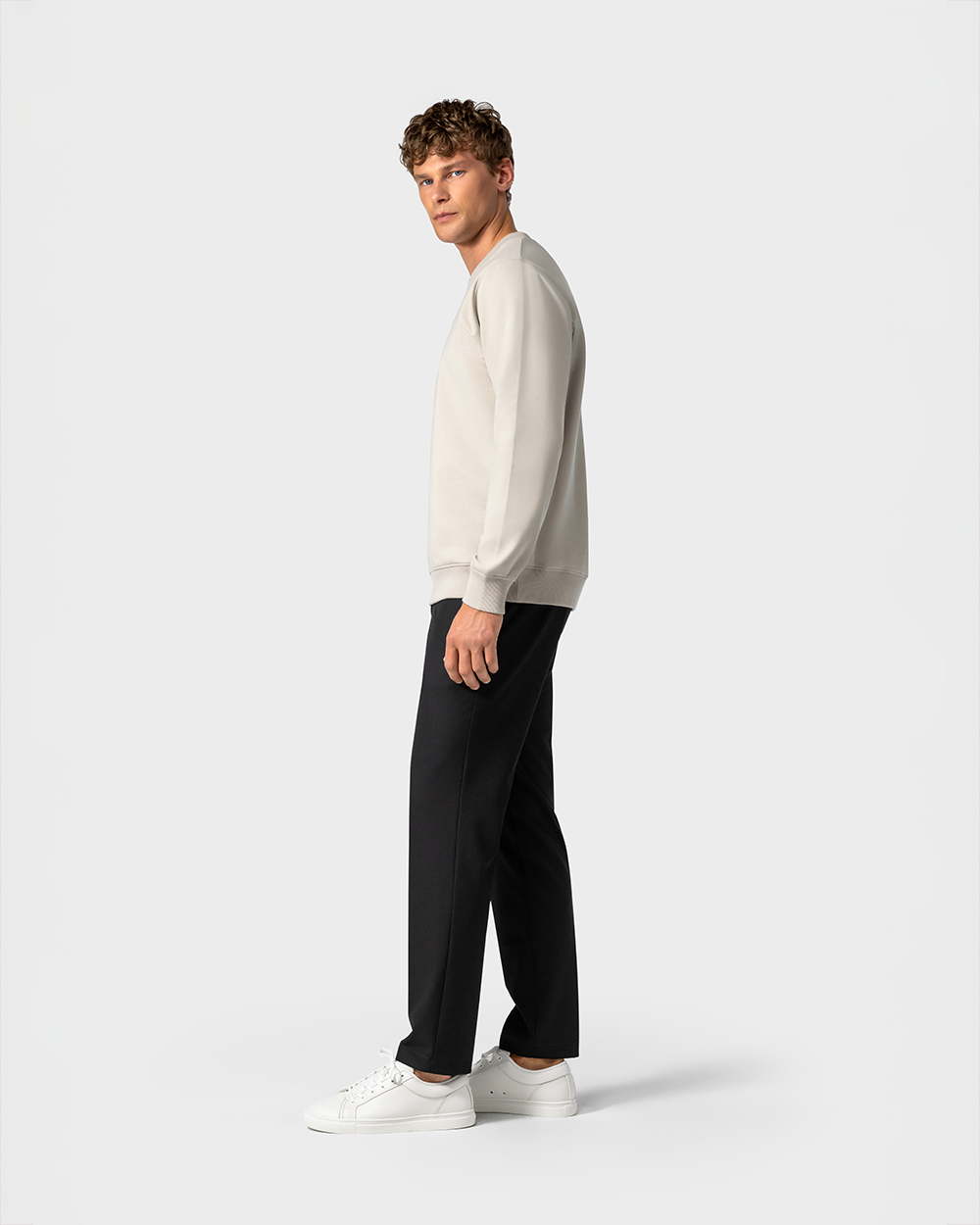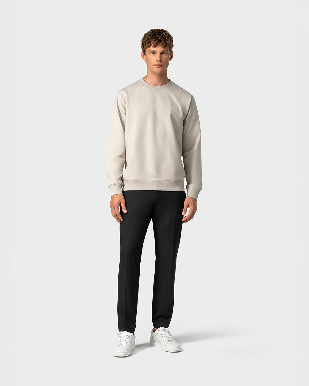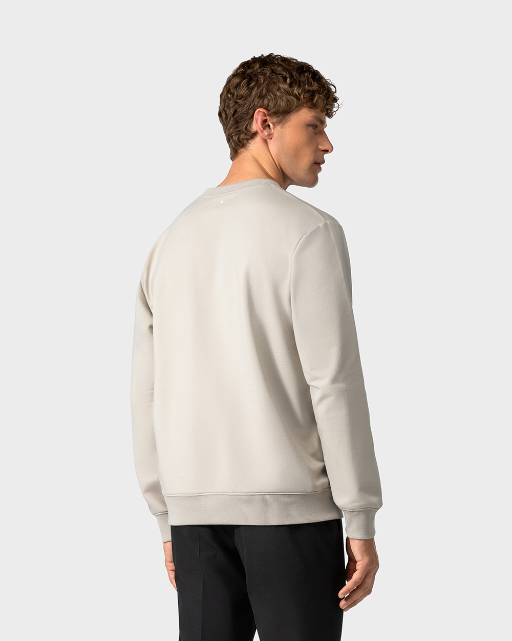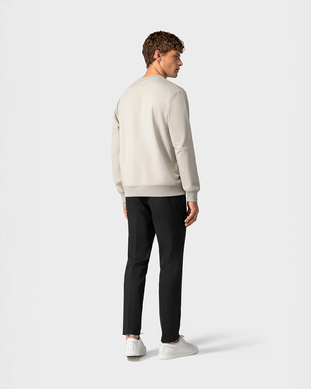 Designed with a reinforced neckline for lasting structure, tonal logo detailing, and finely ribbed cuffs and hem for a refined finish. Smooth on the outside, soft on the inside — delivering the comfort of loungewear with the sophistication of a wardrobe essential.