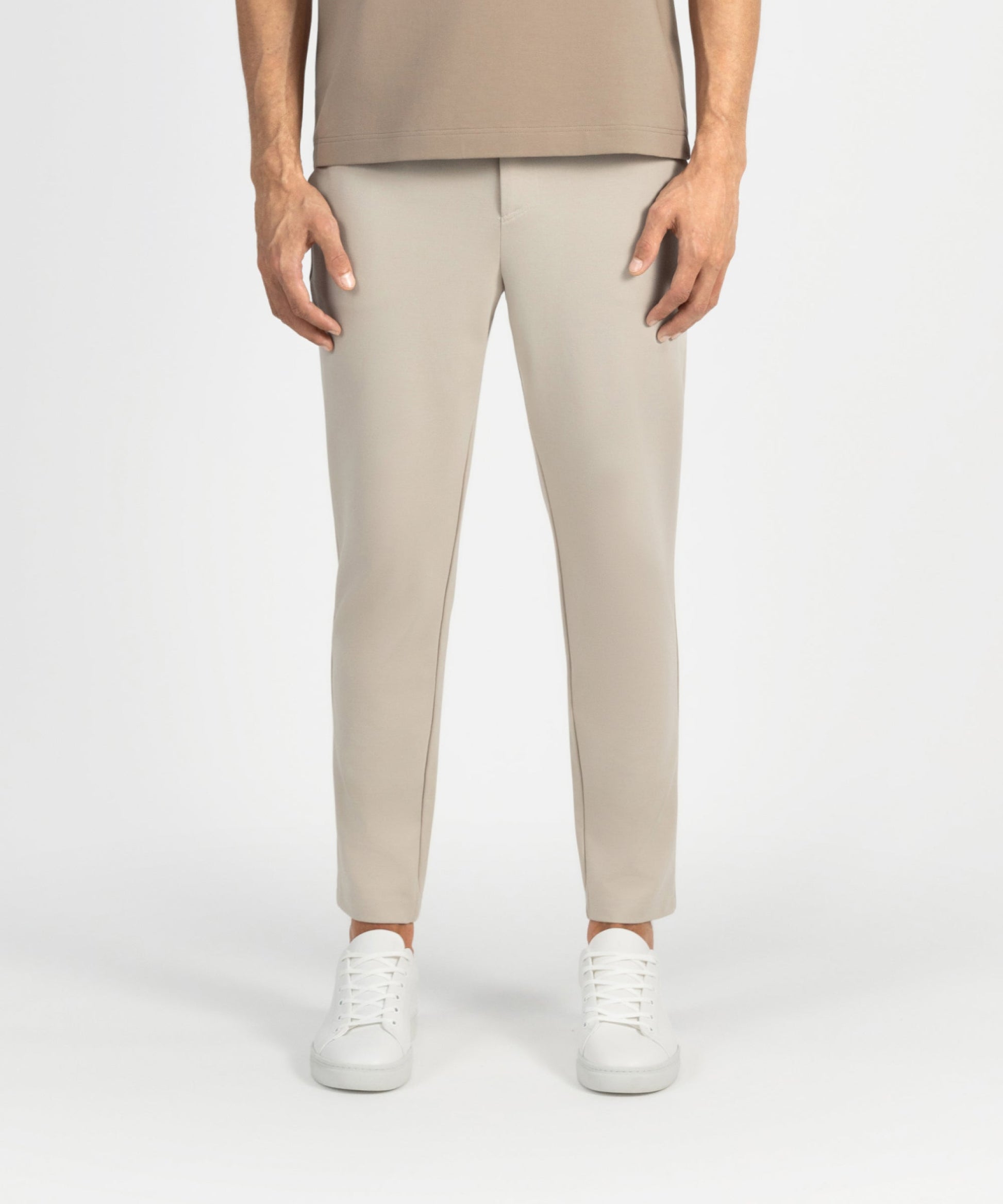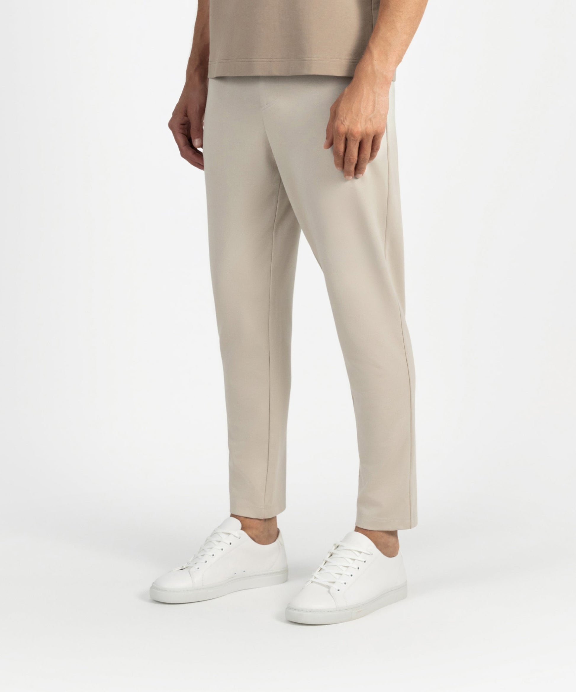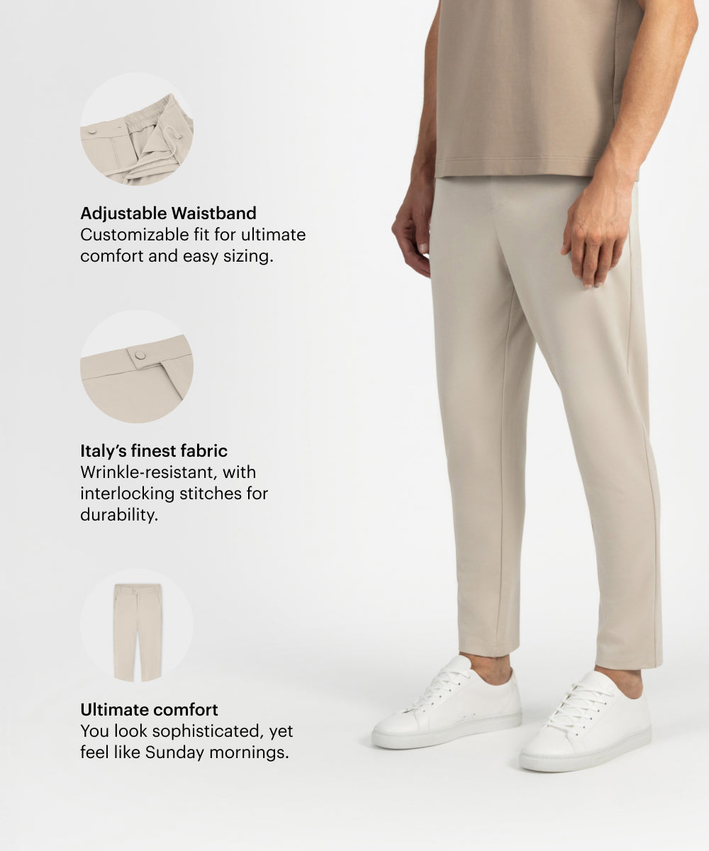 New and even better. Trousers with a sleek, professional appearance and the comfort of sweatpants. Refined in the details you don’t immediately see, but definitely feel—construction, stretch, finish. Woven to perfection in rich Punti Di Roma, a structured knit with subtle give. Soft to the touch, quietly resilient. Now available in multiple waist and length sizes for a sharper fit and more refined silhouette, tailored to feel just right.